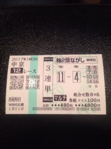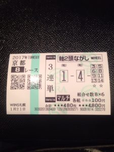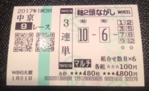 6番人気の4番ワンダーピルエットの3連単2頭軸マルチ。